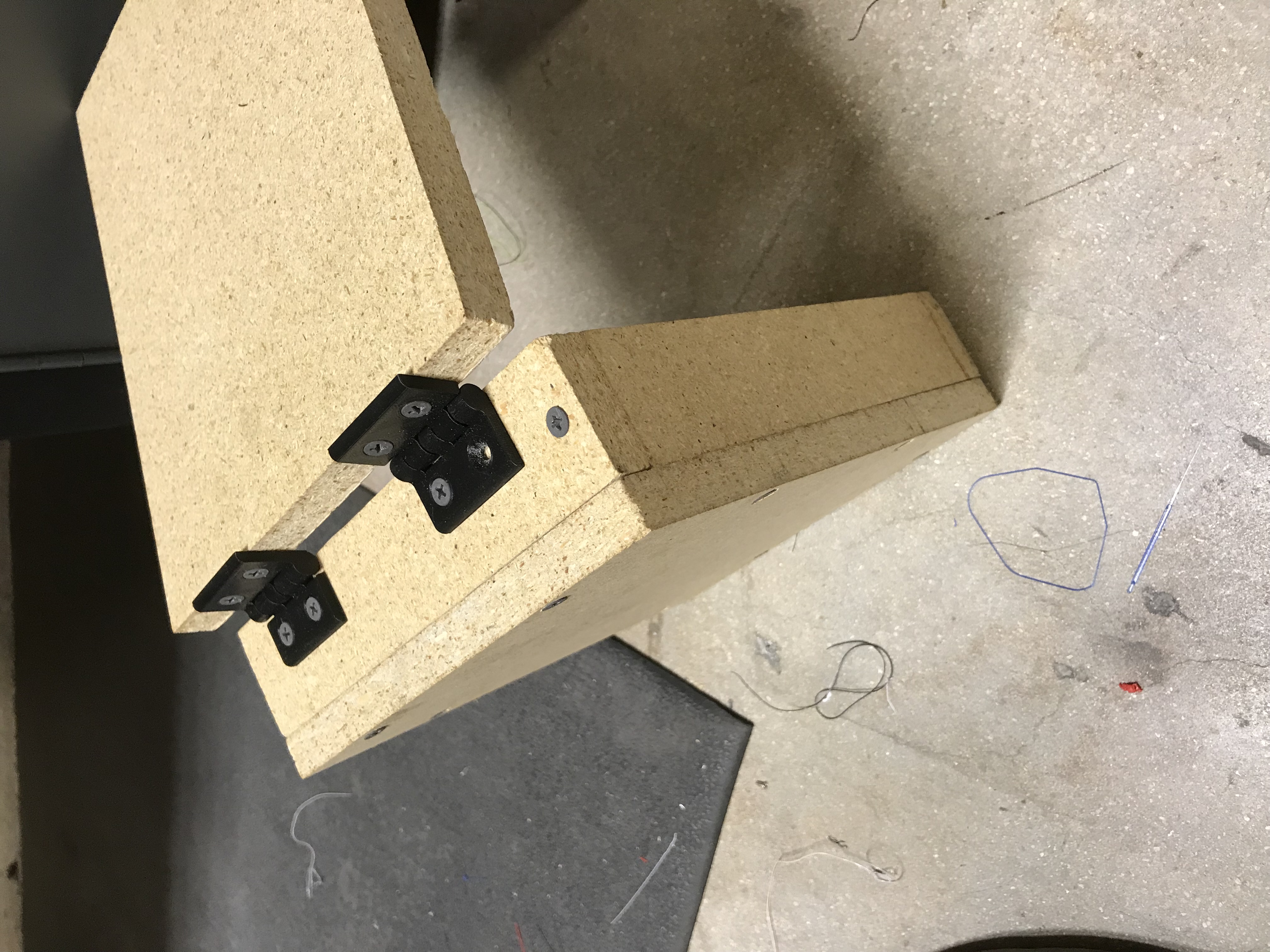 In addition, hinges were placed on the body (as seen below) to allow for electrical configuration and manipulation once the components are added. The hinges were 3D printed in PLA as one piece.