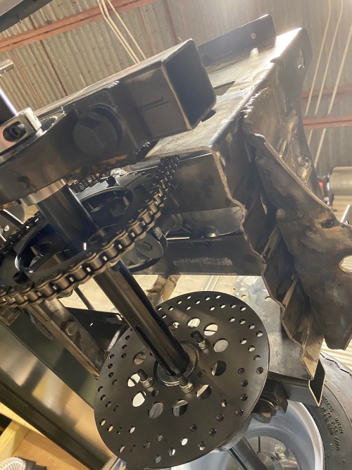 The solid rear axle conversion has been going smoothly with no major hiccups along the way.  The only thing that has been very time consuming is waiting for parts to come in so we can get to work.  We did have to modify the brake disk mount a bit for the holes to line up but other than that the fit for the parts have been good.
