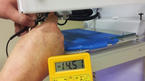 Multimeter showing 14.5 volts going to the hot end