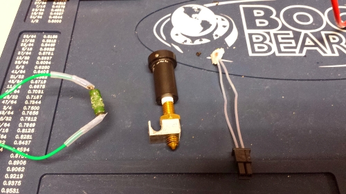Re-assembled hot end ready for testing
