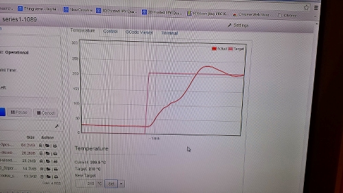 3D Printer interface with temperature graph, showing that everything is working as it should.